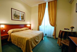Camere: Le camere modernamente arredate, silenziose perche si affacciano sul cortile interno , rese piu comfortevoli perche dotate di bagno privato all'interno ( lavabo, wc , bidet , cabinadoccia , asciugacapelli ) , minifrigo , scrivania , armadio , tavolino dove viene servita la colazione , tvlcd 19" con ricevitore satellitare , aria condizionata a richiesta .Ai piu romantici riserviamo la camera 402 con balcone privato , mentre la particolarità della camera 404 e il TVLCD a 32".